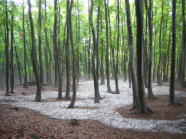昭和の始め頃に木炭にするために政府に供出されるために、この山の巨木は全て伐採され裸山になった。ところがいつの頃からかブナの若芽が一斉に生え出し、めぼしい木を残す【間引き】によって長い年月大事に育てられ、今のすばらしい景観となった。 秋の紅葉の頃もいいが、絶対のオススメは雪解けから5月の始め頃までの新緑の時期。この美人林では、探鳥会・屋外での弦楽器の演奏会なども行われる。隣接する青空市場「森々市場」は地元産の野菜や山菜が安価で豊富に手に入る。