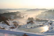 ・田植え前の早朝には、朝もやに包まれ昇る朝日に光る【星峠の棚田】(観光協会サイト)